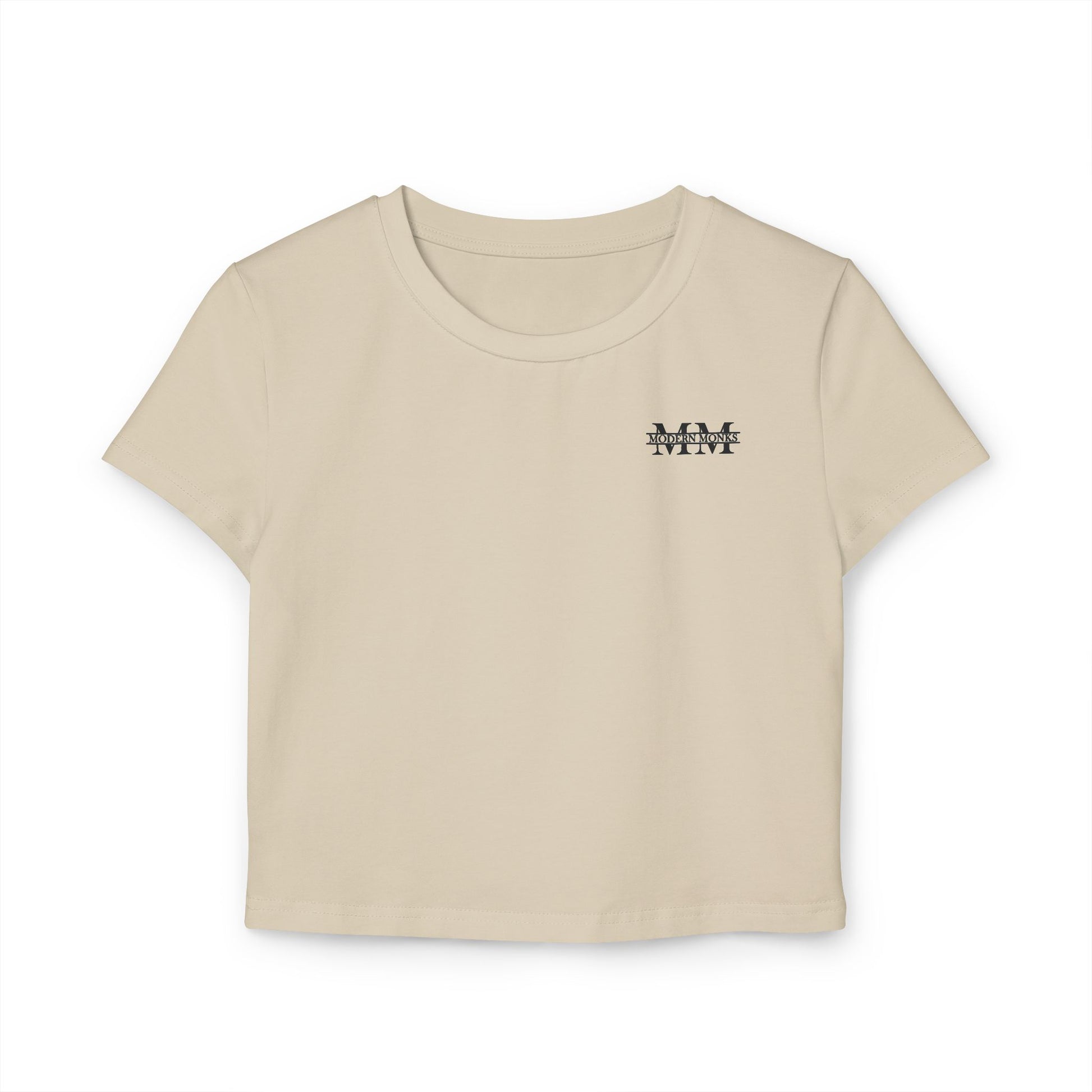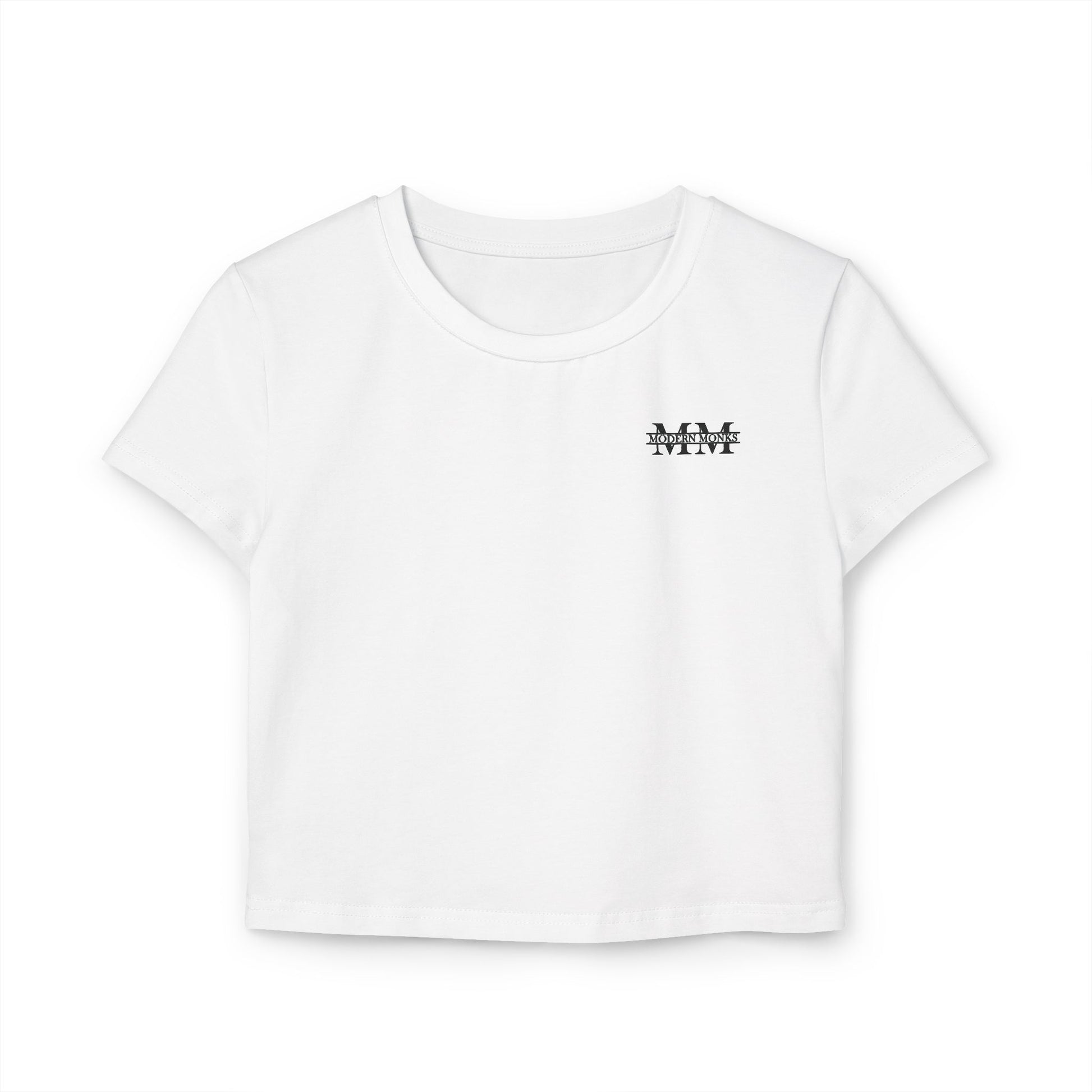 Elevate your casual wardrobe with this sleek, slim-fit crop top—featuring the subtle “MM” initials and “Modern Monks” detail on the upper left. Made from 100% organic cotton rib, it offers both comfort and sustainability, while the mid-length cut creates a flattering silhouette perfect for everyday wear.
