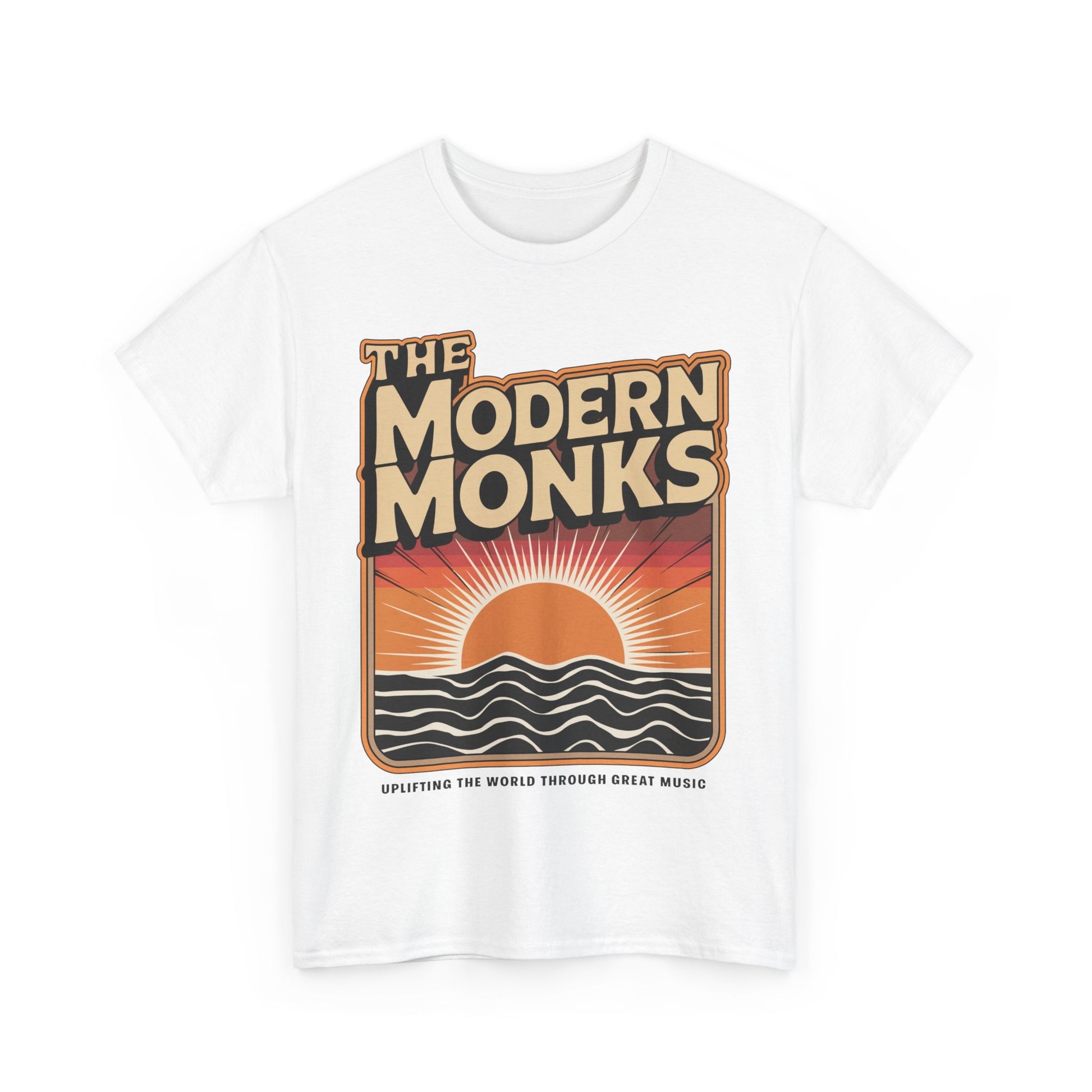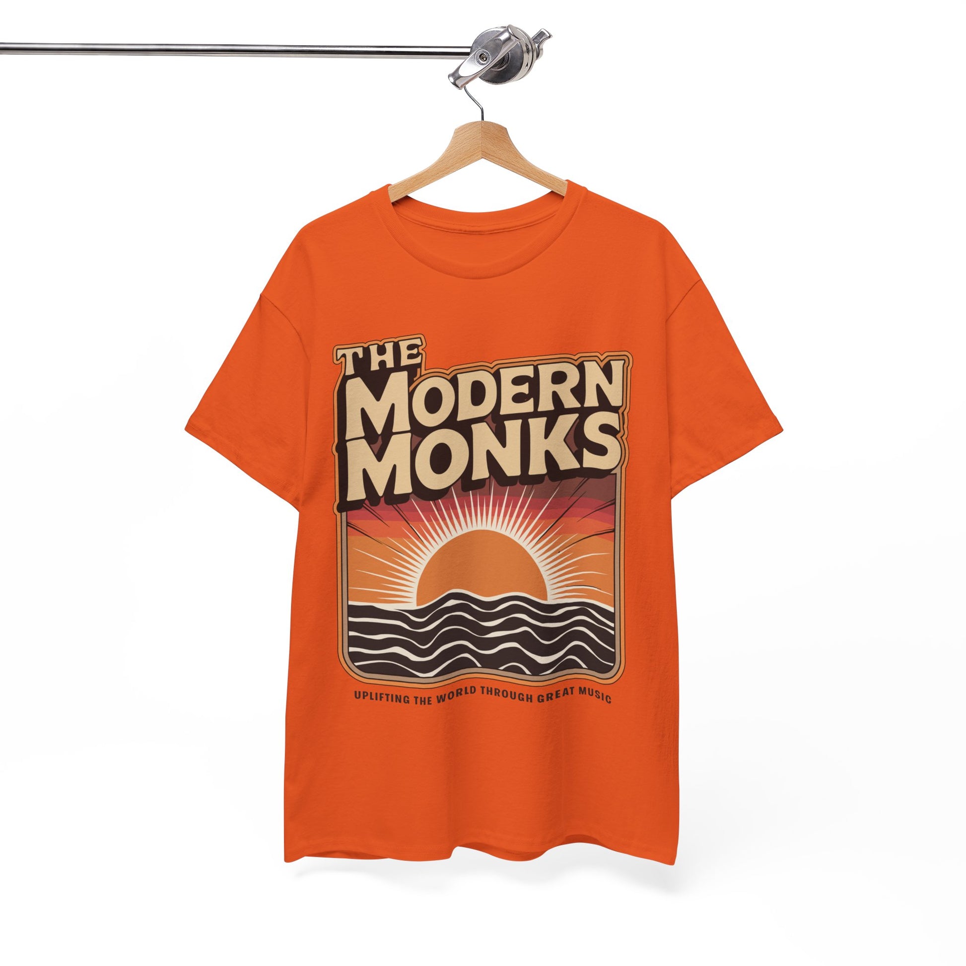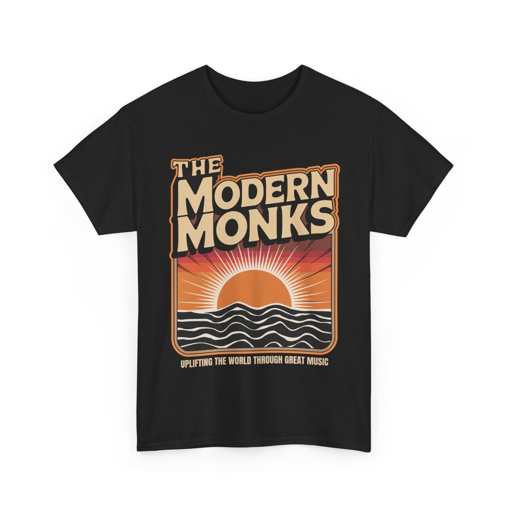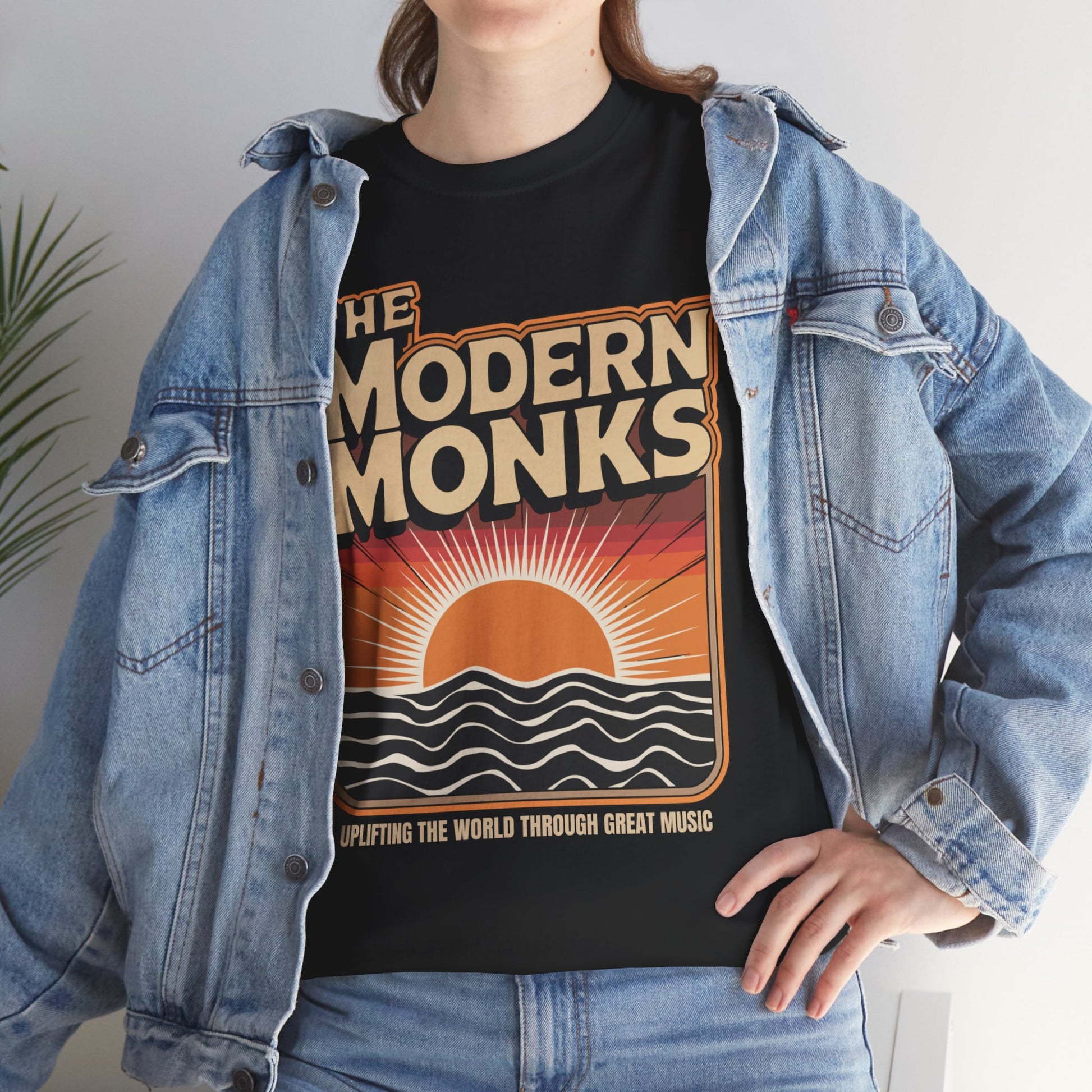 Get groovy with the "Modern Monks Retro Sunrise Tee"! This vibrant, colorful design brings a fun retro vibe, featuring a radiant sunrise in the background with bold, nostalgic colors. It's the perfect shirt for anyone who loves a throwback style that still feels fresh. Comfortable and eye-catching, this tee adds a pop of fun to any outfit while keeping the spirit of Modern Monks alive. By purchasing this shirt, you're not just getting a piece of retro cool—you’re directly supporting our band, helping us create more music and work towards our success. Thank you for being part of the journey!
