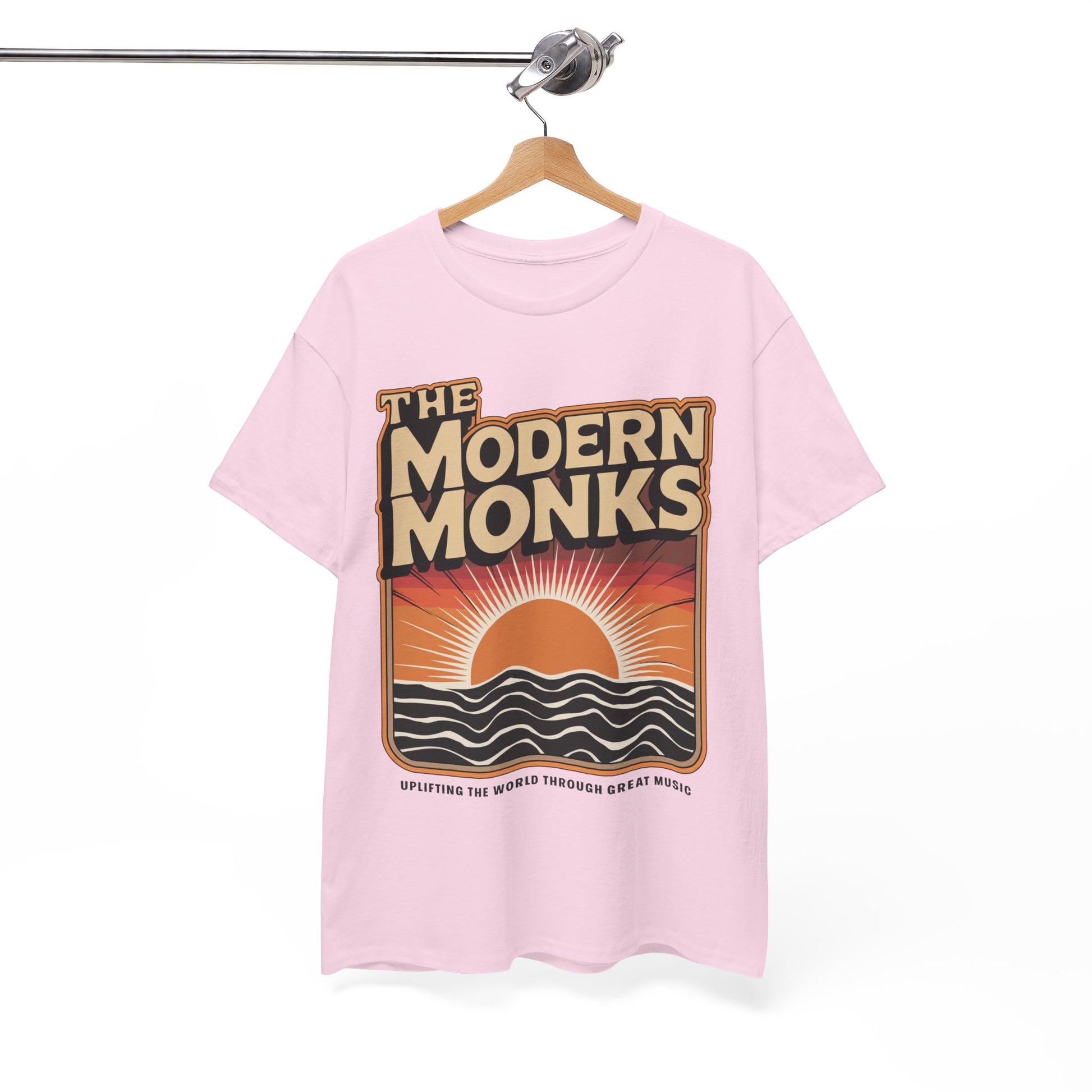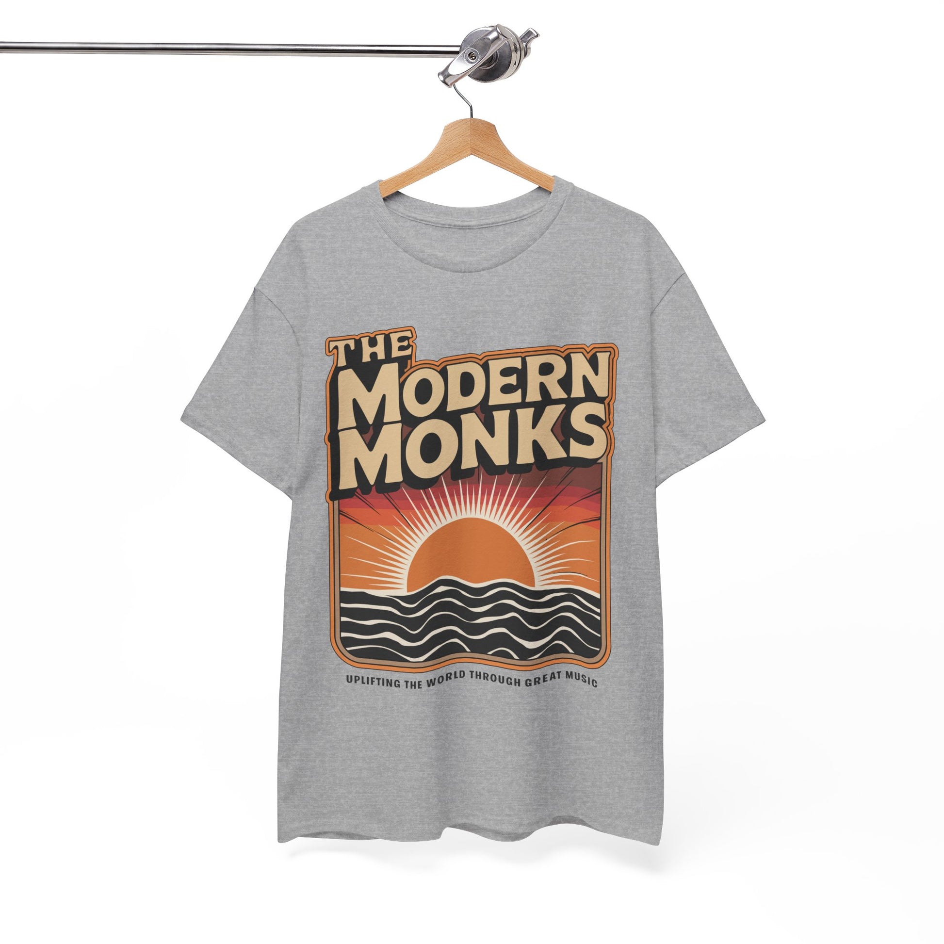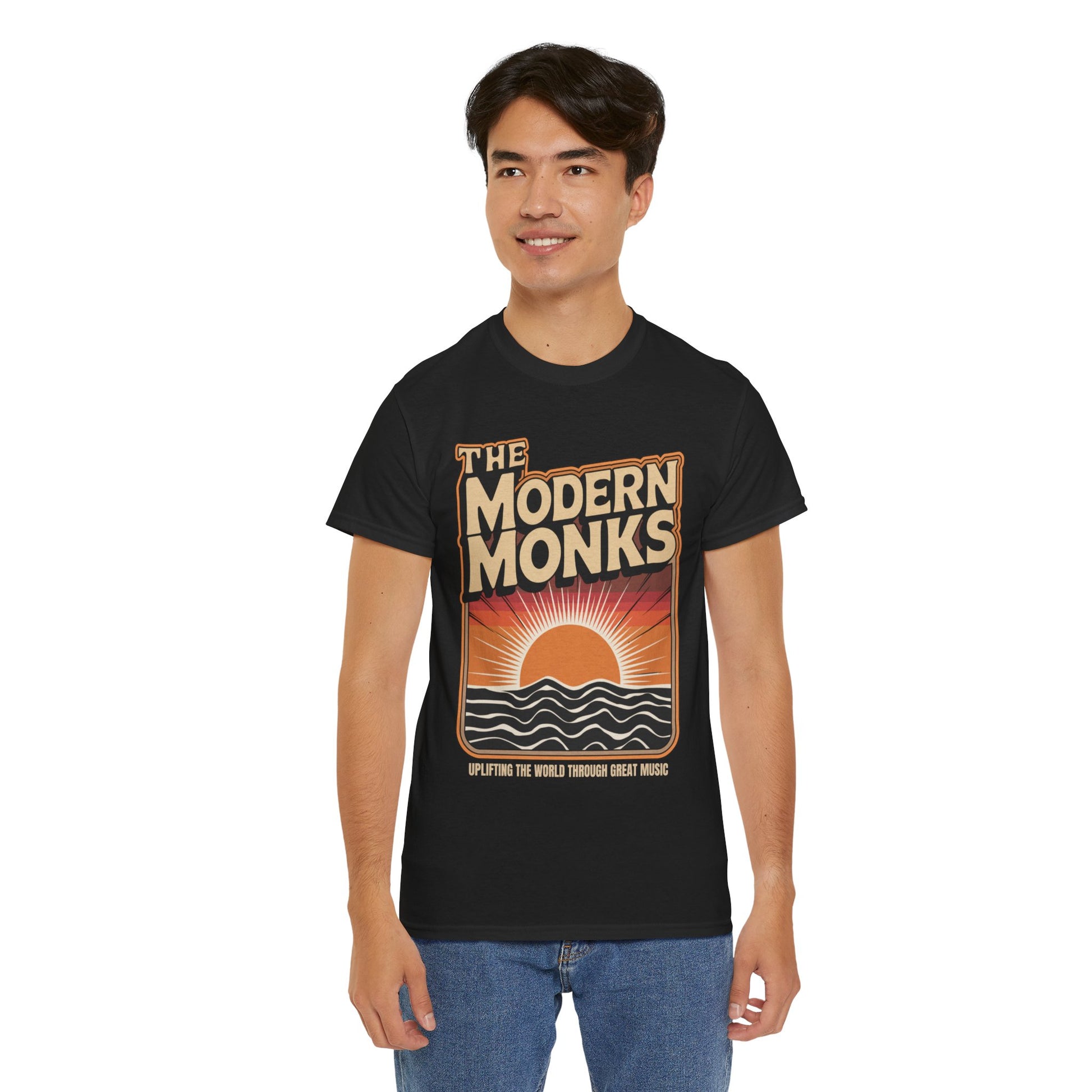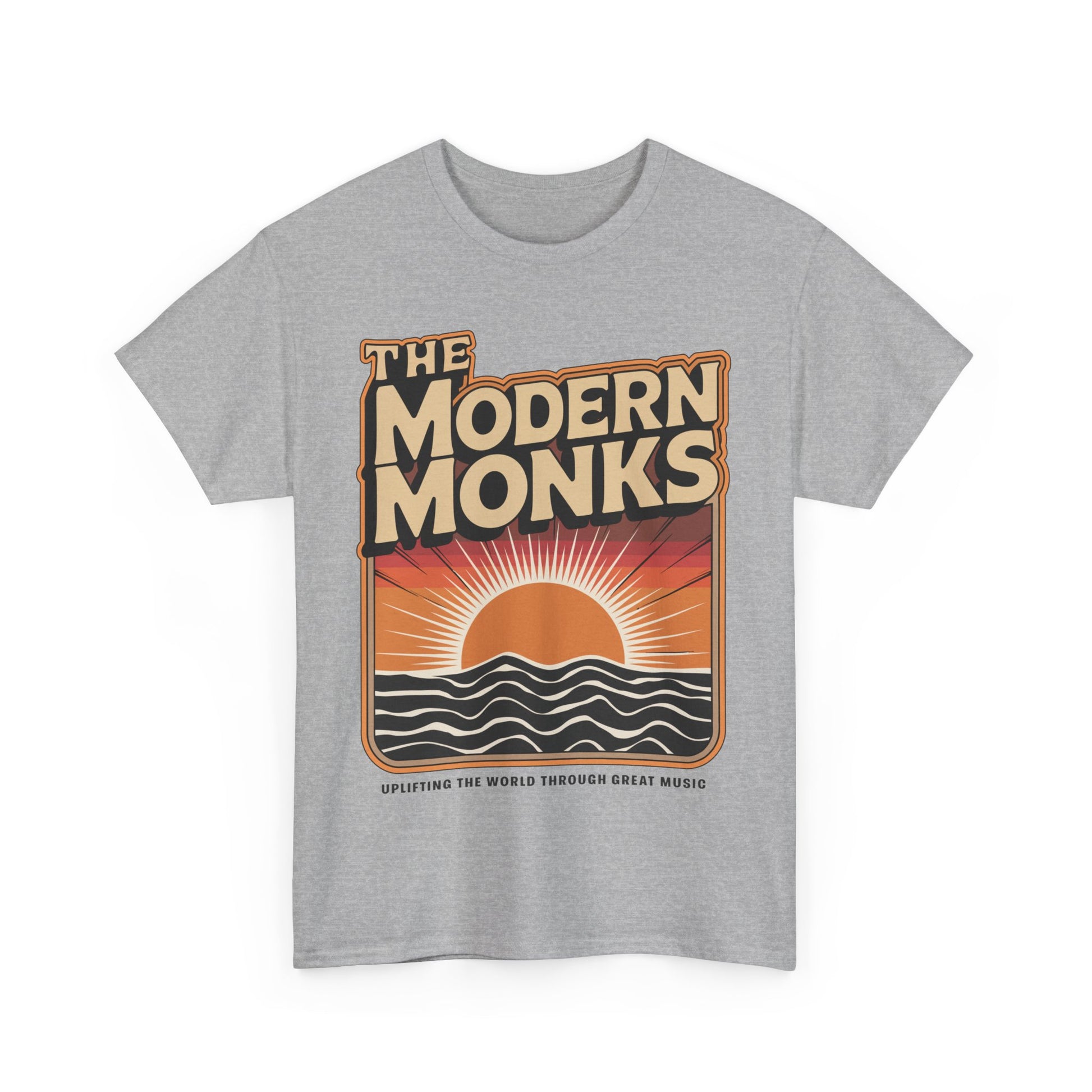 Get groovy with the "Modern Monks Retro Sunrise Tee"! This vibrant, colorful design brings a fun retro vibe, featuring a radiant sunrise in the background with bold, nostalgic colors. It's the perfect shirt for anyone who loves a throwback style that still feels fresh. Comfortable and eye-catching, this tee adds a pop of fun to any outfit while keeping the spirit of Modern Monks alive. By purchasing this shirt, you're not just getting a piece of retro cool—you’re directly supporting our band, helping us create more music and work towards our success. Thank you for being part of the journey!