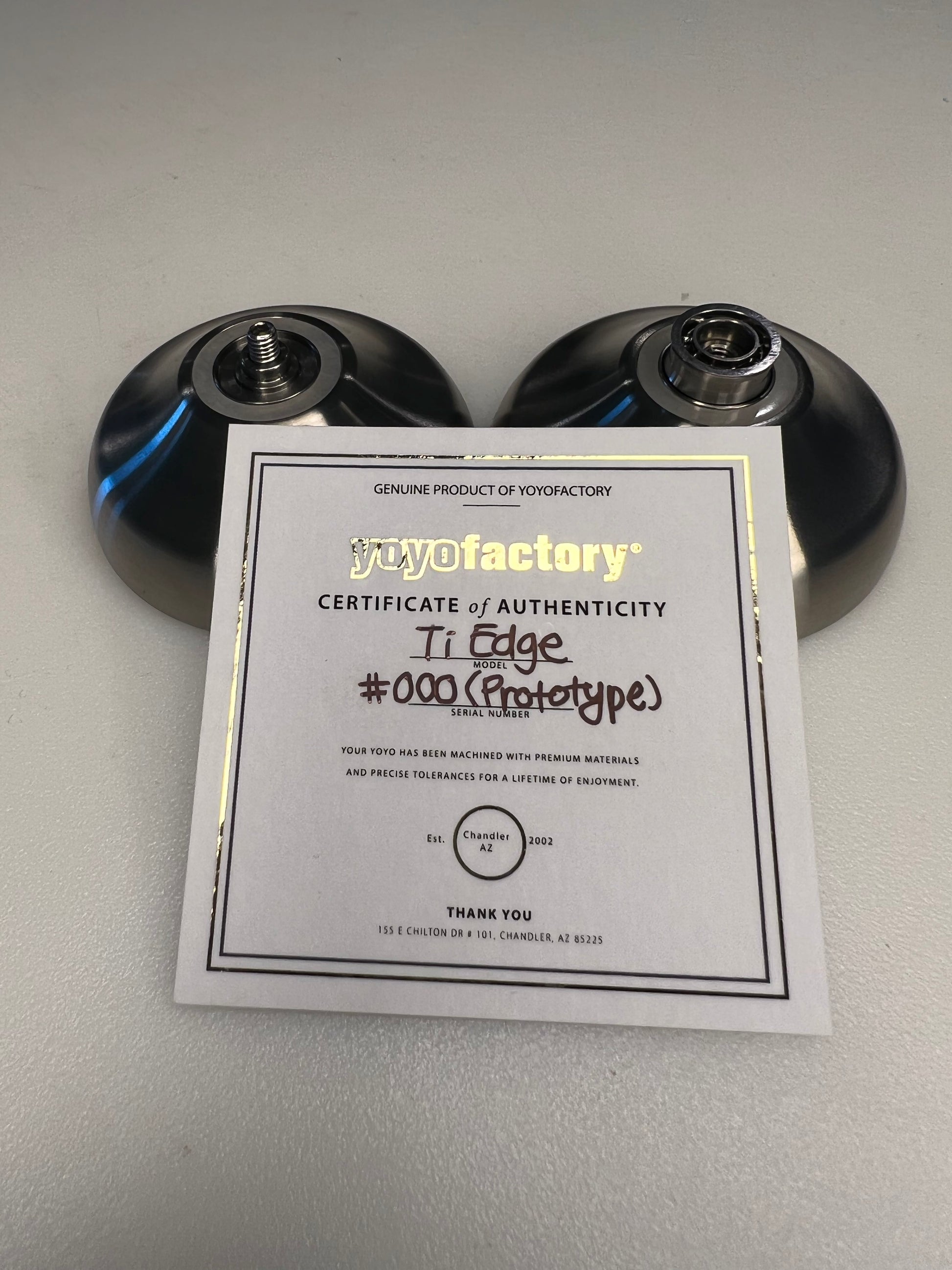 Ti Edge will come in an exclusive "YYF premium collection" luxury box, and along with it will be a certificate of authenticity with the serial number of the exact run number of the yoyo you own.